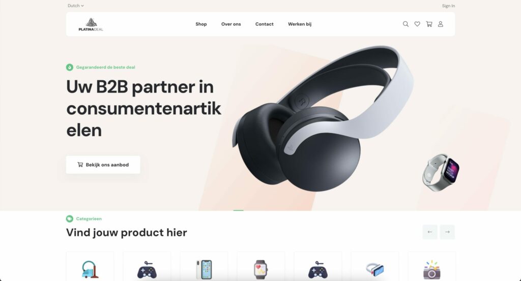 Deze webshop hebben wij volledig op maat ontwikkeld in PHP. De prijzen worden pas zichtbaar nadat een account is aangemaakt en goedgekeurd door de admin via het beheerpaneel. Een complex project, perfect uitgevoerd in PHP. Zie de website op platinadeal.nl